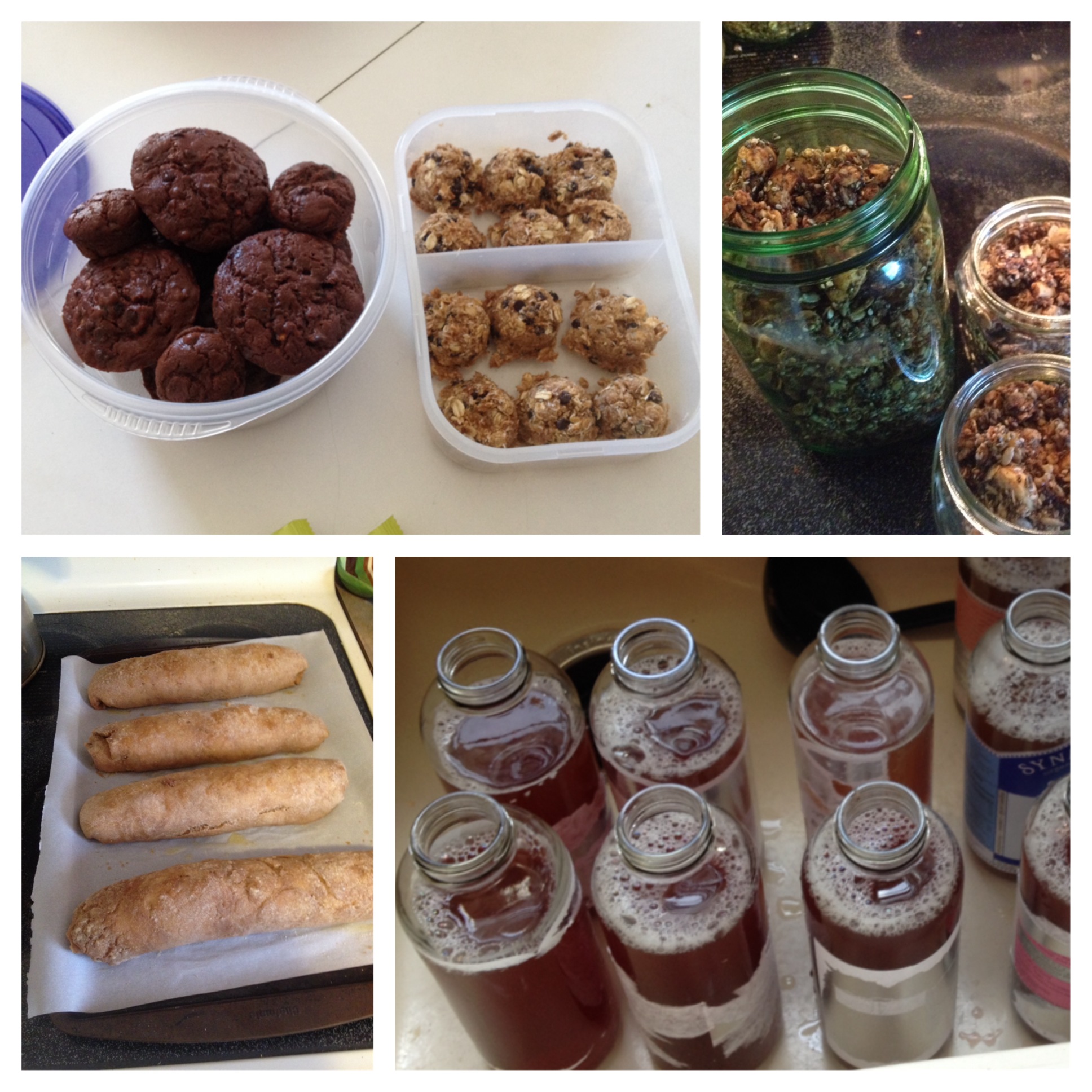chocolate zucchini muffins (from oh she glows), oatmeal balls, thrive cereal (both pre and post workout – serious yumminess and nutrients in that cereal), cinnamon rolls (from feed zone portables) and my second batch of kombucha made! i’m pretty pumped about all the tasty fuel ahead.