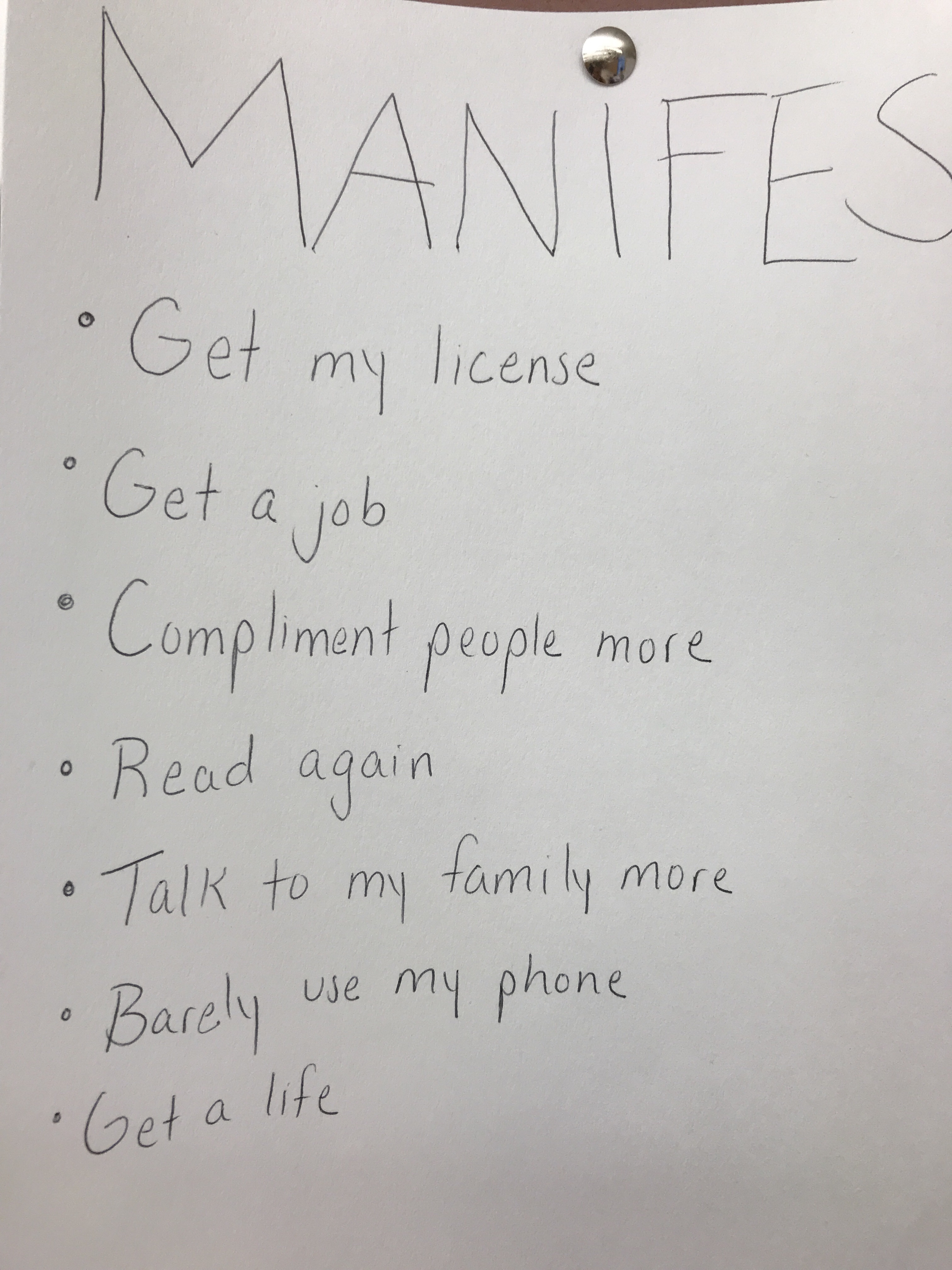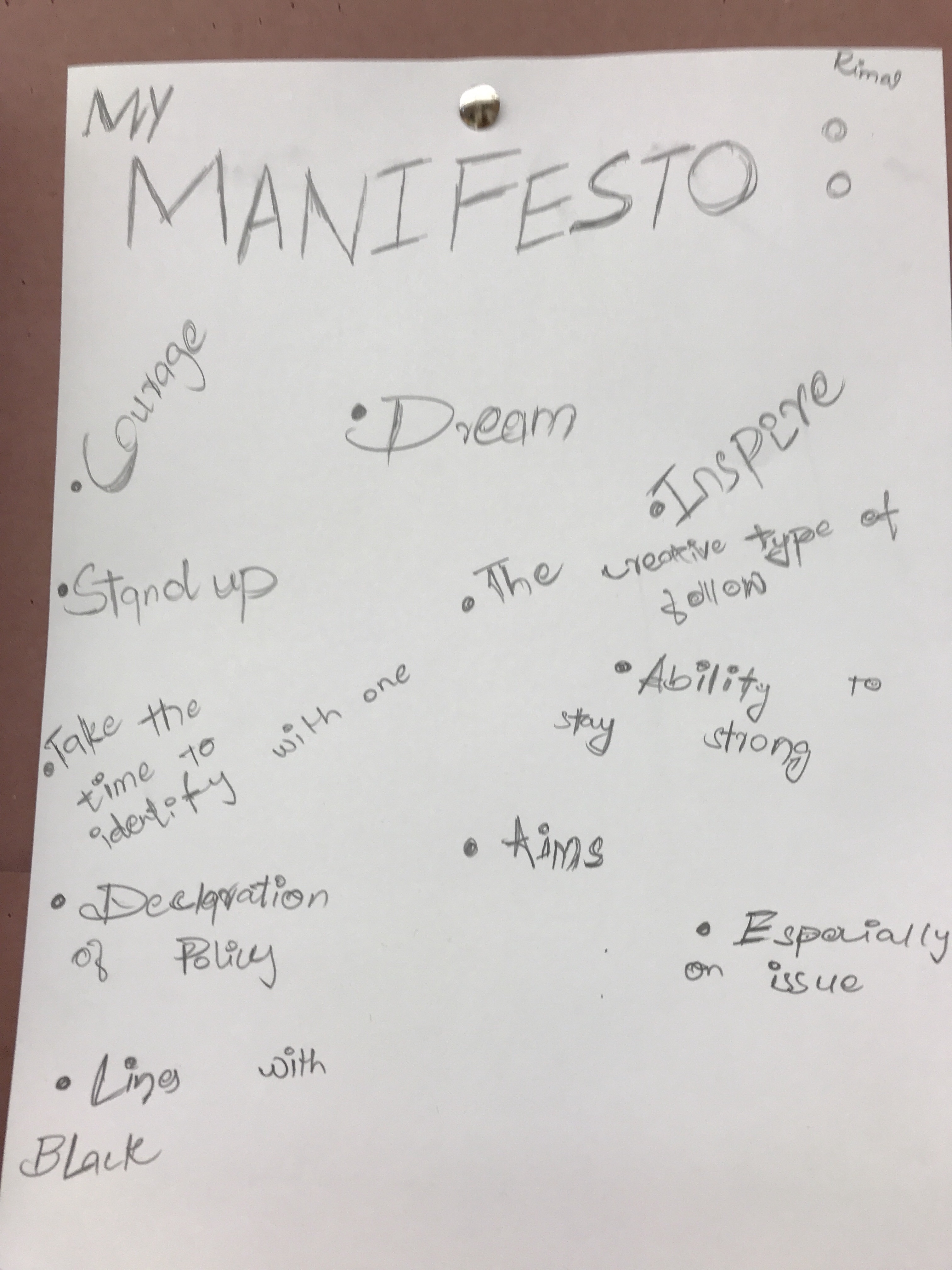 We make manifestos! I don’t really believe in resolutions in my own personal life – I believe in focused goal setting, which we do and will do within subsequent units (i.e. the dreaded drawing unit). But I do believe in having guidelines to help structure your life and your work around. So when times get tough or you’re faced with tough decisions – you can reflect back on your manifesto and get a reality check.